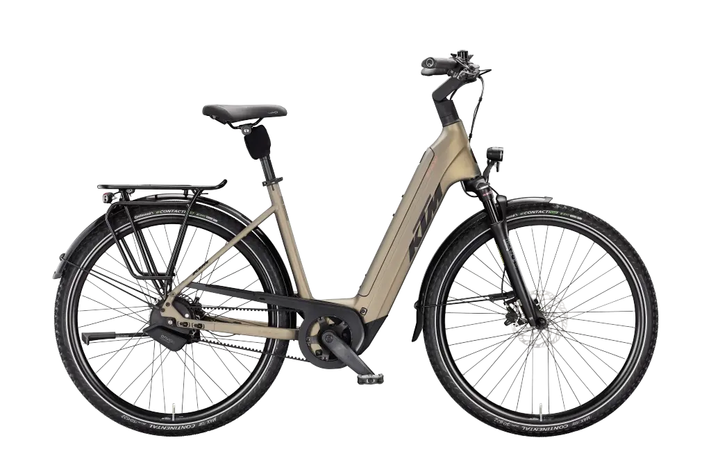 KTM MACINA CITY 810 BELT US 46 Unisex elektromos városi kerékpár OLIVE PEARL MATT színben